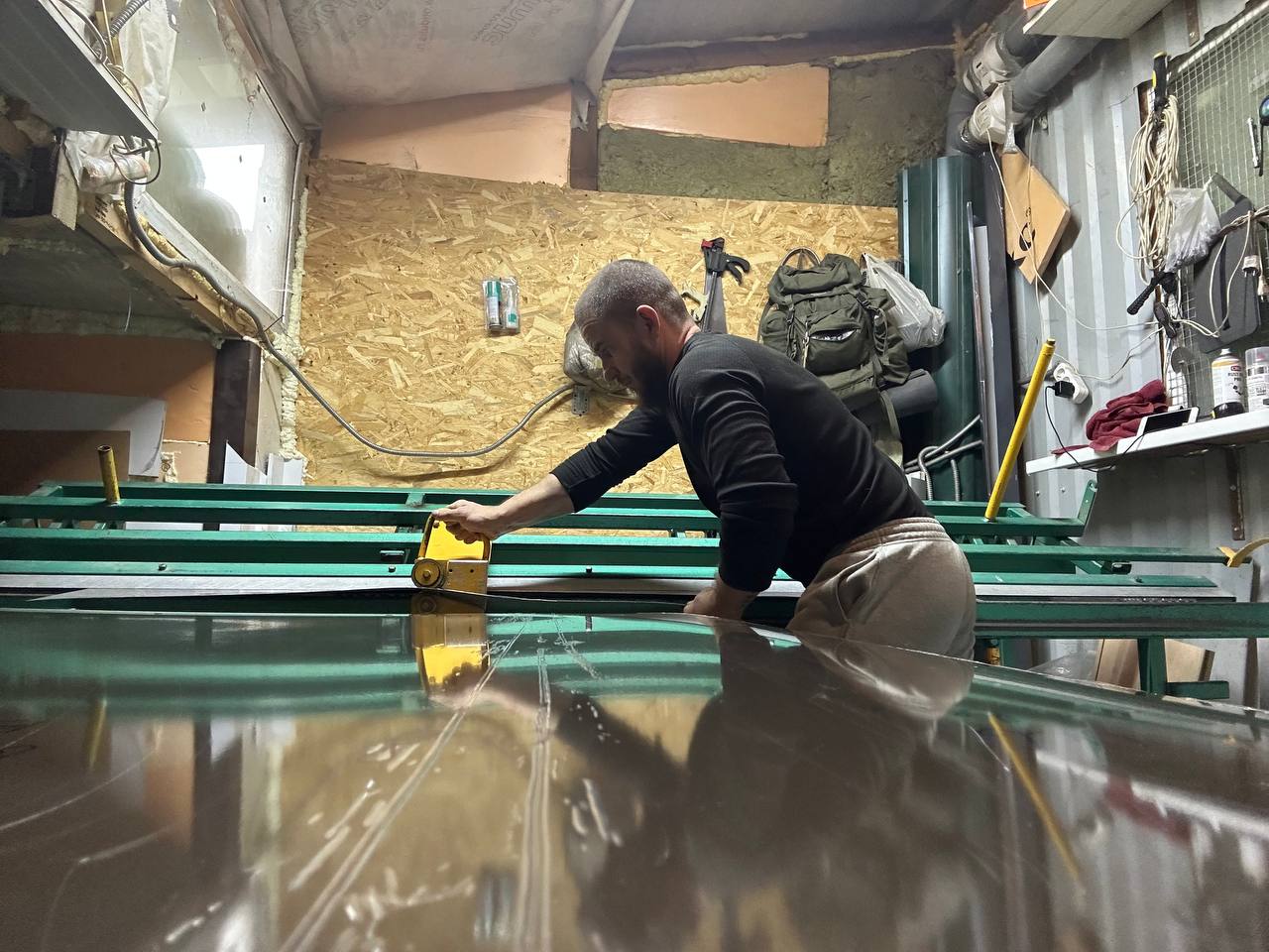 При замере учитываю глубины в четырех углах и выгибаю до мм, чтобы откосы везде максимально прилегали к фасаду.